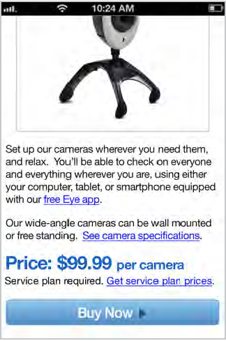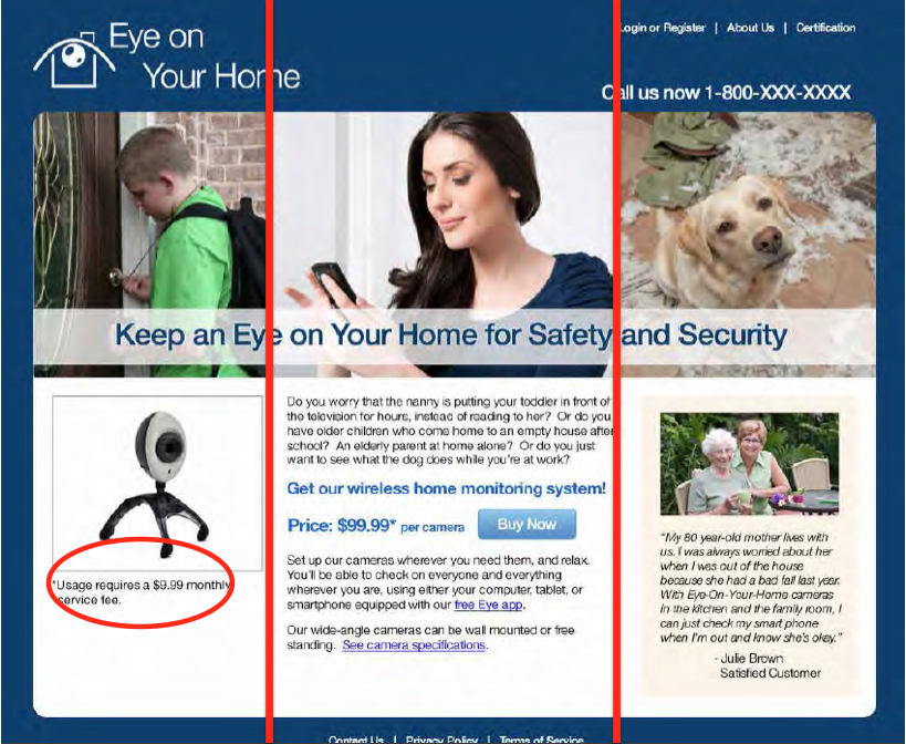 Because smartphones can require both vertical and horizontal scrolling, placing a disclosure in a different column of a webpage than the claim it modifies can make it unlikely that mobile consumers who zoom in on a claim will scroll horizontally to see the disclosure. Claim and disclosure should therefore also be vertically aligned. In this example, the advertiser fails to do so, making it unlikely that the disclosure is clear and conspicuous: